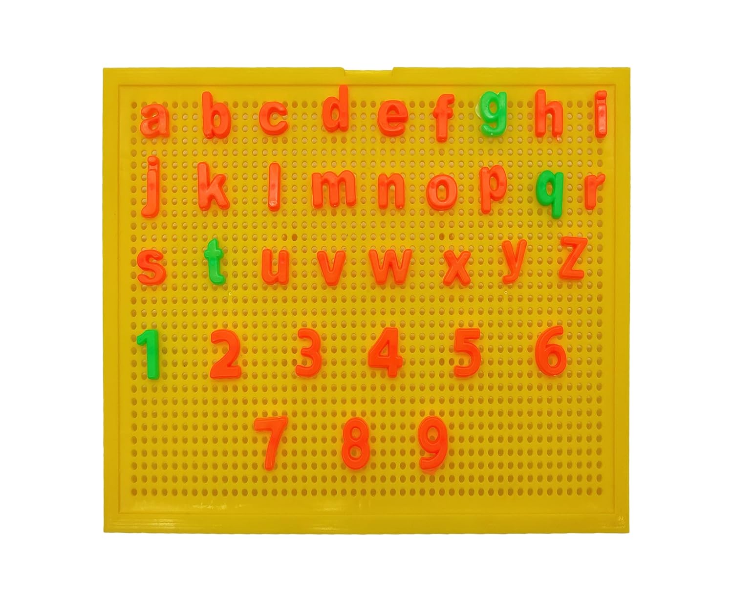VGRASSP Early Educational Pin Board Toy for Kids - Color Recognition & Learning by 90+ Capital and Small Alphabets and 0-9 Numbers - Multicolor, Birthday Return Gift
